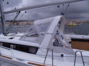 Protección del vinculo de descenso de la web mediante el revestimiento en carril de aluminio. Apertura frontal panorámica. Mejorado velcro sellado en el perímetro del lienzo. Los propietarios de barcos normalmente usan su capucha para proteger la cabina y ladrar del viento y el aerosol. También protege del sol, el descenso de la cabina hacia el interior del barco.